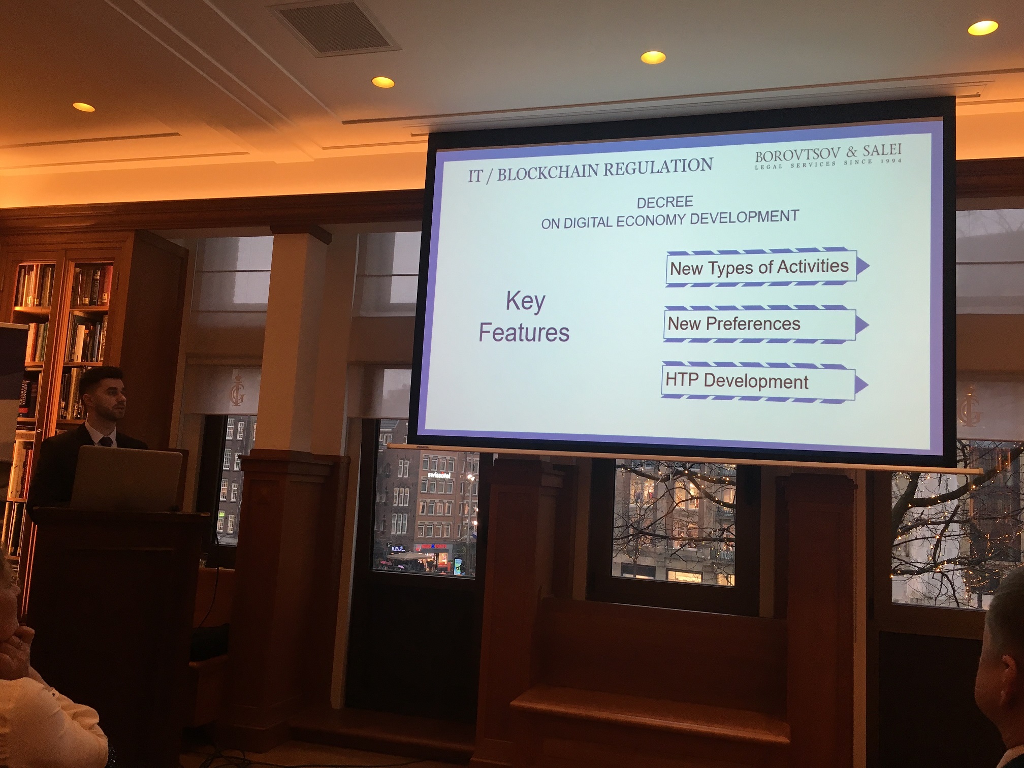 On 2 April 2019 Borovtsov & Salei represented by Senior Associates Nikolay Artemyev and Illia Salei and Junior Associate Saman Negaresh have presented Belarusian political and economic climate, legal framework and potential investment opportunities to Dutch business community. At time of presentation our lawyers provided an overview of such special legal and tax regimes available to investors in Belarus as High Tech Park and Great-Stone Industrial Park.