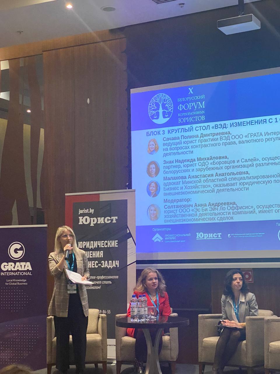 Partner Nadezhda Znak, as an expert, took part in X Belarusian Forum of Corporate Lawyers, which took place on October 28, 2022.