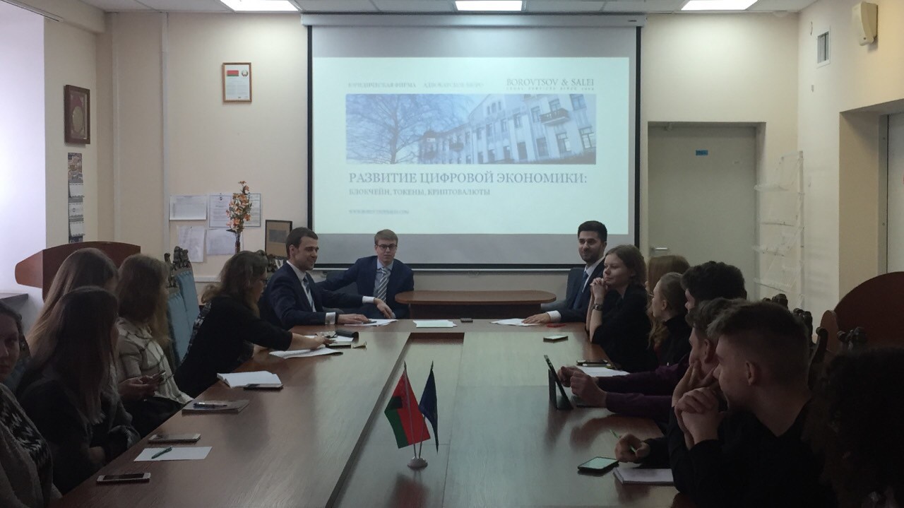 Senior Associates Nikolay Artemyev and Illia Salei and Junior Associate Saman Negaresh have spoken at the round table organized by Civil Law Department of Belarusian State University Law School. Our lawyers have expressed their views on Belarusian digital economy approach and shared their experience working with blockchain project with future lawyers. The round table attracted attention of over 50 law students interested in recent trends of legal profession.