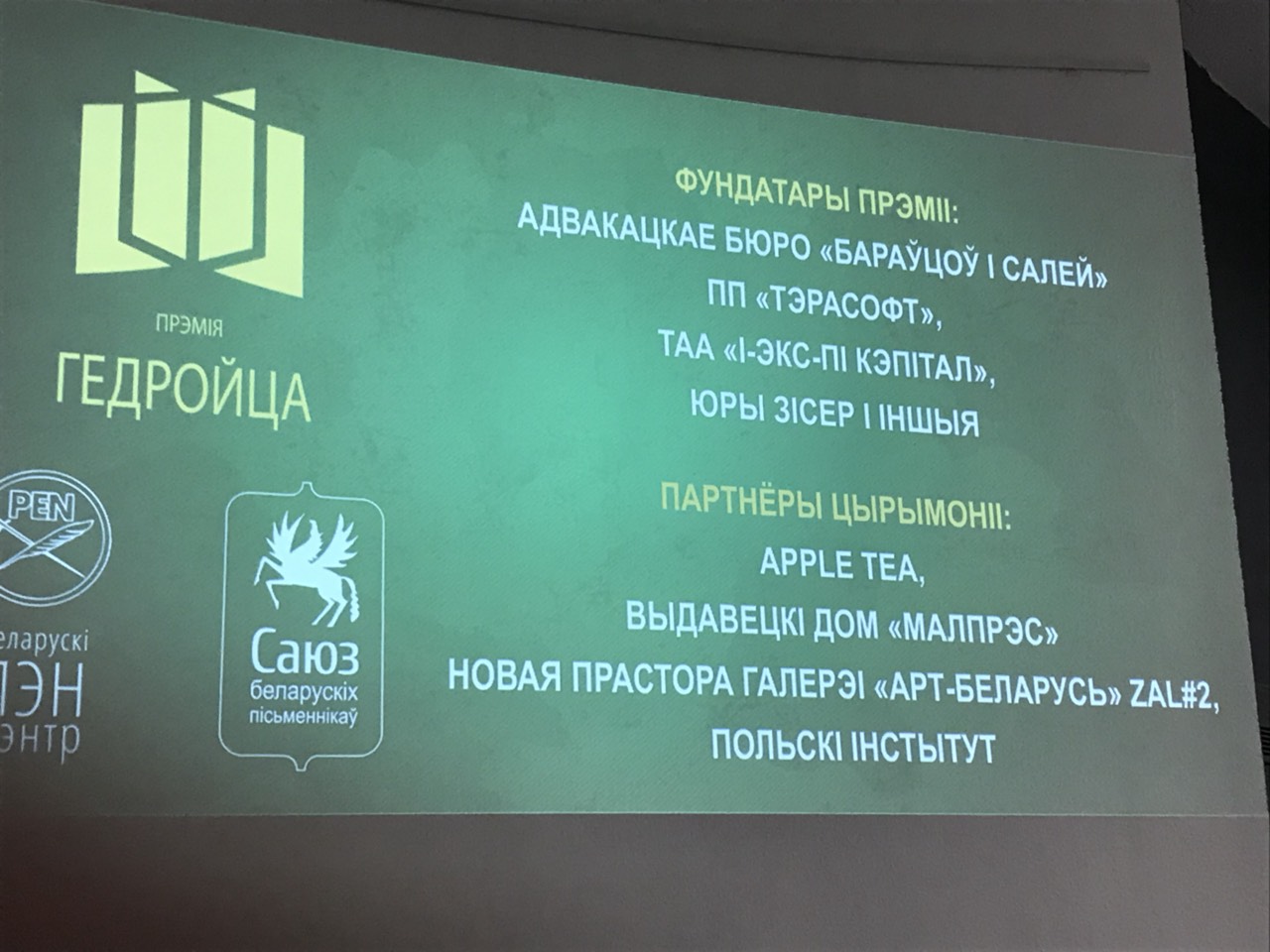 11 октября адвокатское бюро Borovtsov & Salei было радо принять участие и выступить спонсорами престижной литературной премии имени Ежи Гедройца, учреждённой в 2011 году и присуждающейся за лучшую книгу на белорусском языке в жанрах «художественная проза» и «эссеистика». В этом году лауреатом премии I ступени стал писатель и историк Владимир Орлов, автор книги «Танцы над горадам».